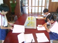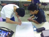 先日実験した内容について、教室で改めて確認しています。太陽光の当たり具合や地球の自転を含め、月の見え方について学んでいます。