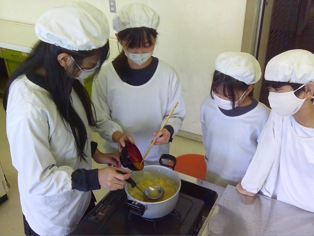 10月15日(水)5年生 家庭科 公開日 2025/10/15 更新日 2025/10/15 5年生の取り組み 5年生は、みそ汁を作る実習です。包丁を上手に使って野菜を切り、味見をしながら丁寧に作っています。自然教室でのカレー作り経験を生かして、みんな手際よく取り組んでいます。 5年生