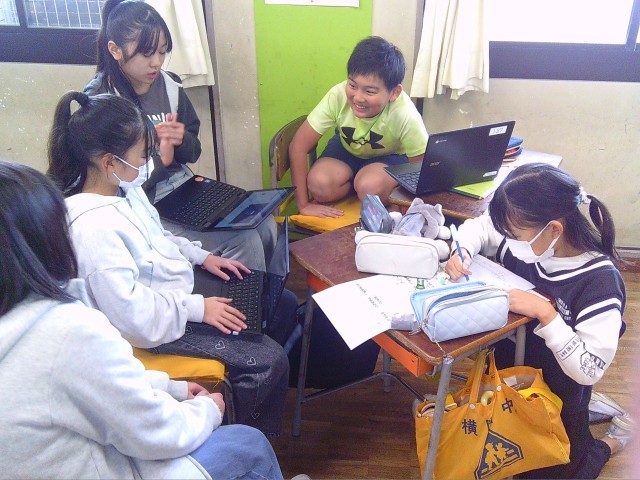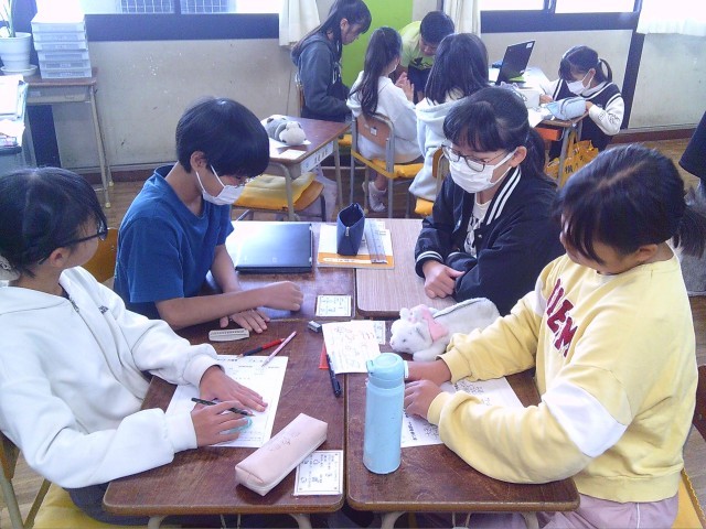 5年生は、月末に控えた ふれあい活動 の内容や進め方について、よりよい活動となるようグループで話し合っています。