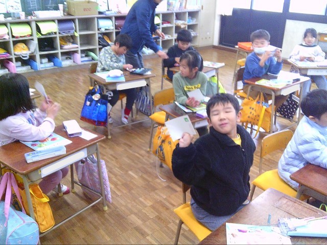 長さの比べ方について考えています。1年生の段階では、直接比較する活動を取り入れ、どちらが長いか実感として学べるようにしています。
