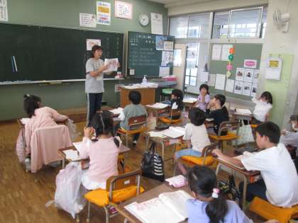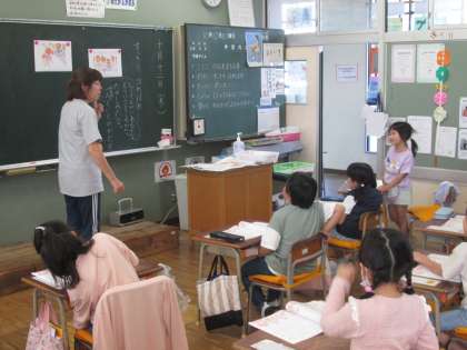 1年生は、道徳「すっきり はればれ」を学習しました。電車に乗った主人公が、後から乗ってきたおばあさんに「席を譲ろうか。」と迷っている心情を、子どもたちは自分に照らし合わせて考えていました。