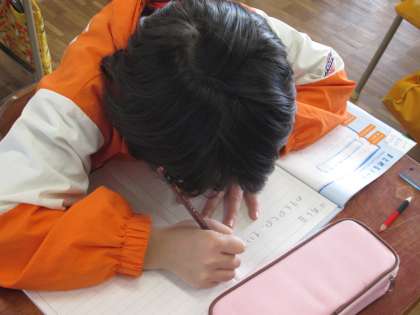 2年生は、国語で視写を学習しました。一字一句間違えないように気をつけながら、書き進めていました。