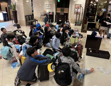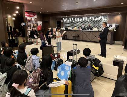 6年生は、全員無事にホテルに到着。たった今、入館式をしました。