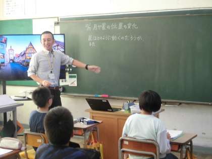 4年生は、「月や星の位置の変化」を学習しています。今日は、これまでの宿題だった星の動きの観察の様子を発表し合いました。