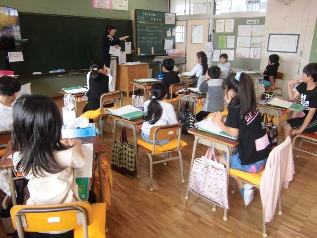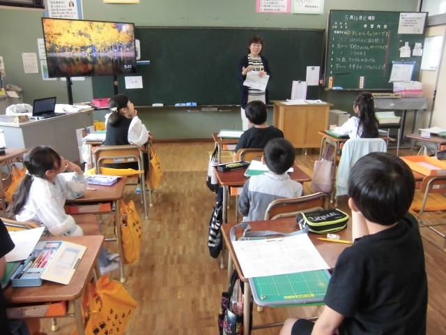 2年生は、1時間目に、次の時間に行う「学校探検」の流れの確認などをしていました。