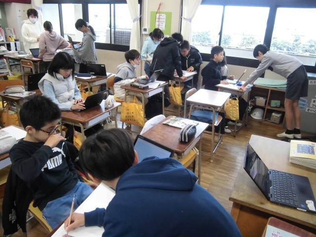 11/20(水)5年生 学活 公開日 2024/11/20 更新日 2024/11/20 5年生の取り組み 来週の水曜日(27日)は縦割りによる「ふれあい活動」で、この回は5年生が担当します。今日は、来週のふれあい活動の準備を行いました。それぞれの班に分かれて、みんなが楽しめる遊びを企画していました。 5年生