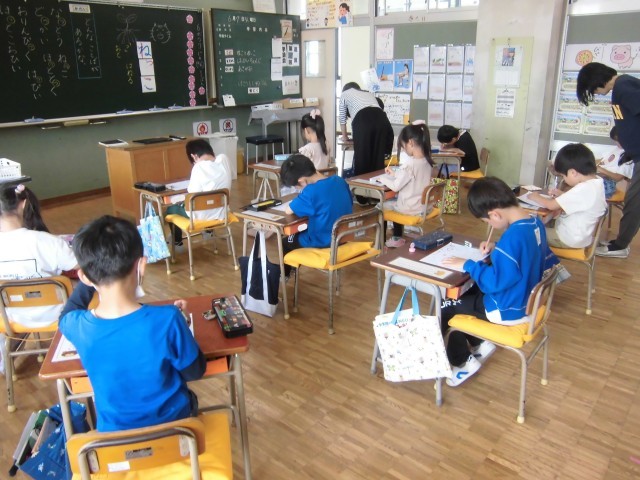 6/7(金)1年生 国語 公開日 2024/06/07 更新日 2024/06/07 1年生の取り組み 1年生は、小さい「つ」の入った言葉(単語)をいくつか出し合って学習しました。その後、ひらがな「ゆ」をプリントを使って練習しました。 1年生