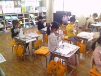1年生は、算数で、タイルを使って10といくつを並べながら、10より大きい数を学習しました。