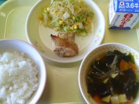 今日の献立は、米飯、牛乳、カレーライス、ほうれんそうとコーンのサラダ、りんごヨーグルト、でした。ほうれん草のソテーにはコーンがたっぷり入っていました。カレーライスは子どもたちが大好きです。おいしかったです。