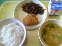 今日の献立は、あげパン、牛乳、ポトフ、くきわかめサラダ、でした。サラダはワカメとコーンの食感が楽しかったです。揚げパンは高温の油でさっと揚げて砂糖をまぶすそうです。外側がカリカリでおいしかったです。