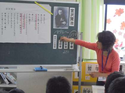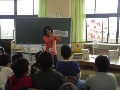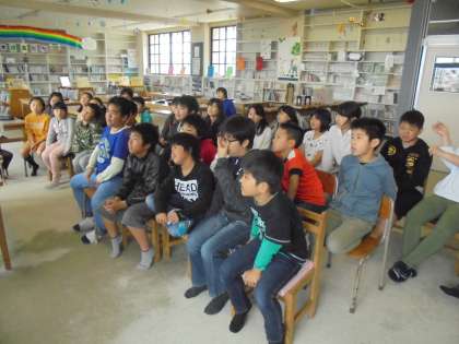 4月24日(火)4時間目に5年生は山本学校司書さんがブックトークをしてくれました。楽しい本の紹介をしてくれました。5年生で学習する宮沢賢治の経歴を紹介したり、作品を紹介してくれたりしました。「読んだことある」や「読んでみたい」という声が多く聞こえてきました。