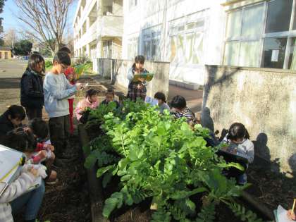学級の花壇に秋に大根を植えたところ、今がちょうど食べ頃になりました。今日は収穫の日。まず、葉の様子などをよく見て、詩を書きました。それから、ぬきました。簡単にぬけたという声。その後、味噌汁に変身!とてもおいしかったらしく、何度もおかわりをしていました。その後、給食もしっかり食べました。
