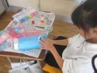 和室には、うわばきを脱いでしっかり揃えて入ります。たたみの部屋で、みんな自然と正座をしていました。カメラを向けると、お茶を飲むポーズ!