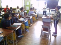 6年、算数の様子です。「分数と整数のかけ算とわり算」の学習です。昨日は、仮分数でしたが、本日は、帯分数を整数でわる計算の仕方を考えます。6年は、少人数指導しています。昨日紹介した教室と別教室の様子です。