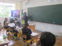 4年算数の様子です。1.236リットルを表す図が提示され、何リットルであるかを読み取る問題に取り組みました。0.01の位までしか学習していない子どもたちが、友達と相談しながら0.006の図をどう表すかを考えていました。
