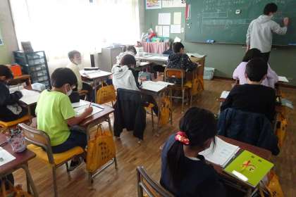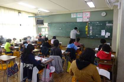 4年算数「分数」の様子です。「1より大きい分数はどう表せばよいか」が課題でした。仮分数や帯分数としての表し方や用語を学習しました。