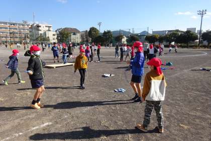 朝のふれあいペア読書に続き、ふれあい縄跳びを昼休みに行いました。ペアと共に、また、いくつかのペアが一緒に縄跳びをしました。