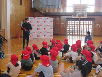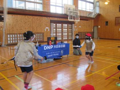 沼津市スポーツ交流推進課事業「キャリア教育講座 スマートフェンシング体験」が1、2年生対象に行われました。オリンピック選手に教えてもらえると、始まる前からわくわくしている子がたくさんいました。