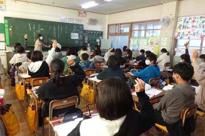 6年国語の様子です。言葉のきまり「意味をそえる言葉」として「まで」「しか」「も」の使い方を学習しました。