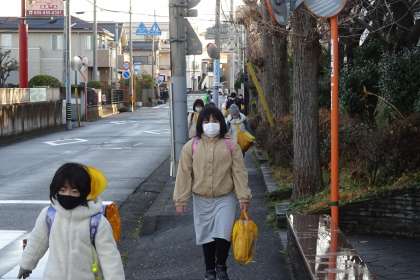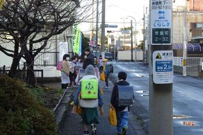 朝の登校風景です。これまでよりも気温は高く、風もないので気持ちのよい朝になりました。