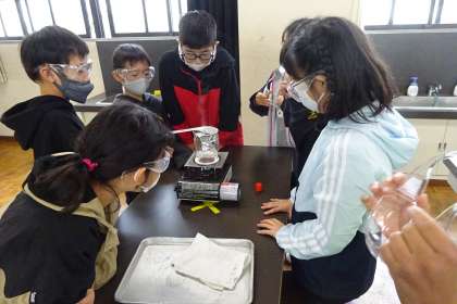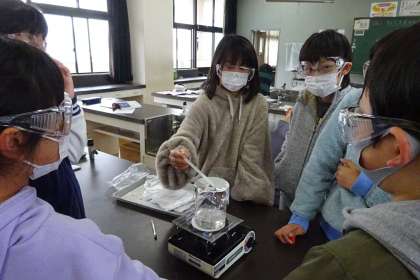 4年理科「すがたを変える水」の様子です。水を熱して出てくる湯気の様子について調べていました。かくはん棒についた水が湯気の正体であることが分かりました。