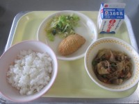 本日の給食メニューは、「サワラの味噌マヨネーズ焼き ひじきと大豆の炒め煮 だまこ汁 自校米飯 牛乳」でした。