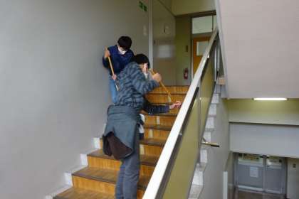 なかなかできない黒板クリーナーや扇風機の掃除、特別教室や廊下のワックスがけなどを校舎全体に散らばって汗を流しました。ありがとうございました。