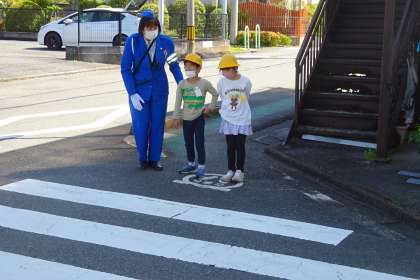 信号の見方、横断歩道の歩き方について学習したことを生かして歩きました。