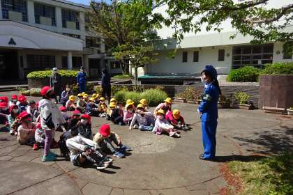全員修了した後、感想を聞くと、「横断歩道を実際に歩いて勉強になりました。」と答えていました。最後に、指導員さんから「命は一つ。命は自分で守るんですよ。今日、行った勉強を生かして、これからも安全に登校したり、下校したりできるようにしてください。」という話に対して、皆元気に「はい。」と答えました。