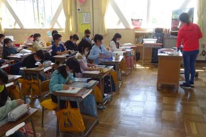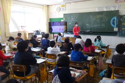 4年理科「天気と気温」の様子です。晴れの昼の様子とくもりの昼の様子を表した2枚の写真を比較して気がついたことを出し合いました。次の時間は、天気によって一日の気温の変化にどのような違いかあるのかを調べることになりました。