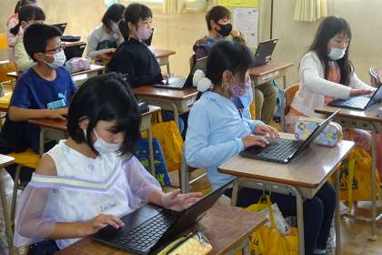 ノートにまとめた後、パソコンを開いてワークシートを確認していました。