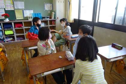 3年言語科読解の時間の様子です。本時は、読解担当の先生と校長先生のことをもっと詳しく知るために、どうやって比べればよいかなという課題で進められました。最初は、見た目で2人を比較し、ベン図にまとめていきましたが、より詳しく知るために、「質問をする・いろいろな見方でみる」ことに気づき、2人に質問をすることになりました。