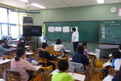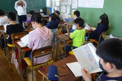 5年算数「合同な図形」の様子です。本時は、合同な図形の性質を使っていろいろな問題を解いていました。