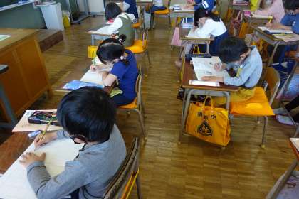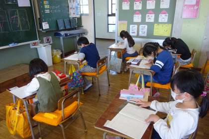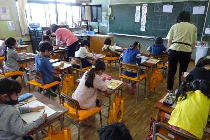 1年国語の様子です。「つくし」「かさ」「ことり」をノートに練習していました。よく見て、ゆっくり丁寧に書いていました。