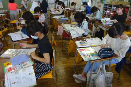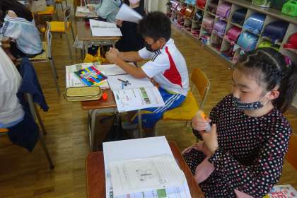 3年理科「こん虫の育ち方」の様子です。チョウの体のつくりについて調べ、カードをノートに整理しました。