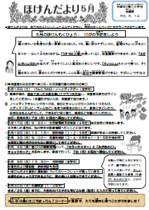 今日配布した「ほけんだより5月」を配布文書に載せましたので、ご覧ください。ほけんだよりにも載っていますが、明日5月15日(土)は「けんこうの日・ノーメディアデー」です。配布された健康手帳に家庭で測定した体重を書き、ノーメディアチャレンジカードにある4つのコースを選んで挑戦してみてください。結果をカードに書き、17日(月)に学校へ提出してください。1番と2番の難しいコースに挑戦できた人は、掲示や放送をしようかと考え中です。家族や友達と工夫して、楽しく過ごしてみてください。