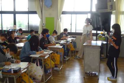 6年言語科読解の時間の様子です。クラスの友達に自分のことを知ってもらおうと、好きな食べ物・好きなこと・プロフィールについて紹介しました。聴く側は、自分と比較しながら、関連づけながら聴いていました。紹介後、聴いて感じたことや質問を直接伝えていました。