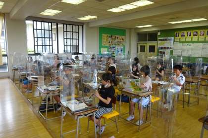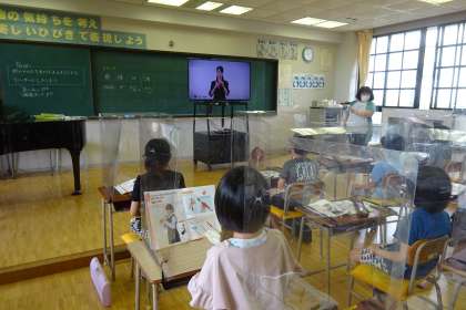 3年音楽の様子です。今日初めてリコーダー指導をしました。授業の前半、鍵盤ハーモニカの演奏を終え、鍵盤ハーモニカを片付けると、「やったー。」という声。いよいよリコーダーの練習です。先生の説明、動画の説明を受けながら、姿勢、持ち方、吹き方を学びました。