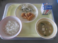 本日の献立は、「塩鮭 野菜炒め 生揚げと野菜の煮物 委託ご飯 牛乳」でした。