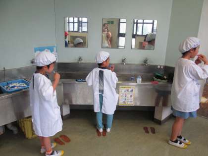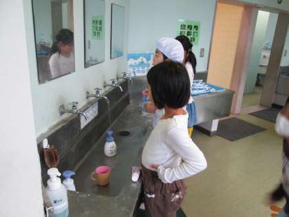 歯みがきハハハというリズミカルな歌を流して給食後の歯みがきを呼びかけ、歯みがきをした人が多かったクラスを保健委員会で放送しています。