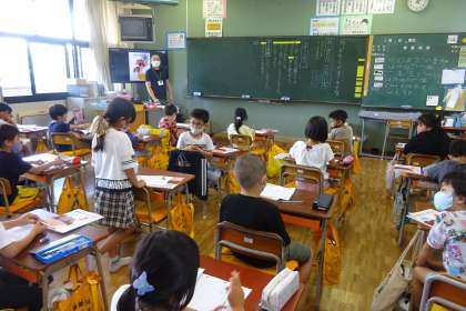 2年道徳「どちらがすてきかな」の様子です。「礼儀正しい態度」について、資料をもとにみんなで考えていました。
