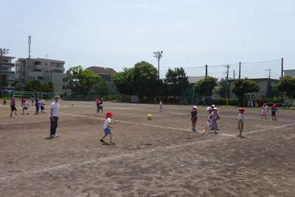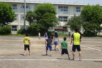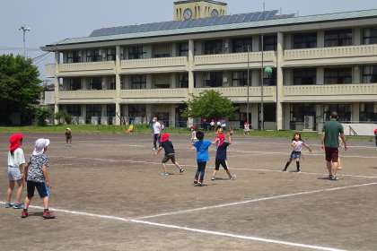 グラウンドへ目を向けると、ドッジボールをして楽しんでいる学年がいました。上から1年、2年、5年の様子です。1年生は、体育でボール遊びをしたことから、休み時間もドッジボールをする子たちが見られるようになりました。梅雨の晴れ間をみんな楽しんでいました。