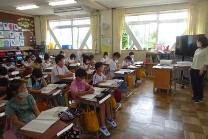 4年国語「手で食べる はしで食べる」の様子です。説明文教材です。いろいろな国の事例を比べながら書かれている内容を読み取っていきます。本時は、日本とインドの米の違いをノートにまとめていました。