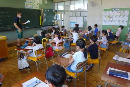 2年生活「まちたんけん」の様子です。第二校区のすてきな場所で、自分が知っている所を紹介します。カードにまとめて発表会をします。発表会をする前に、発表の仕方、発表の聴き方についてみんなで確認しました。
