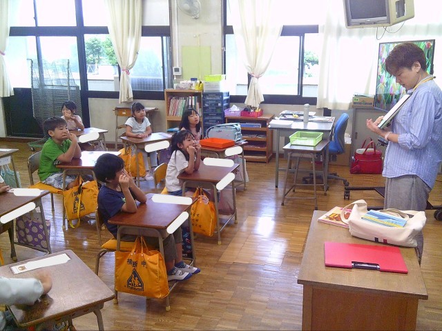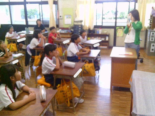 本日は朝の読み聞かせです。ボランティアの皆さんによる本の紹介に、拍手で応える子供たちです。