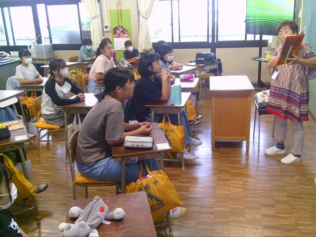 4~6年生も、ボランティアさんが紹介してくれる本の世界に引き込まれています。