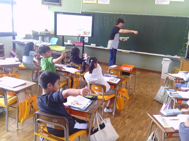 昨日、市道公園へ「あきみつけ」に行き、第一小、千本小の1年生と交流を深めることができました。