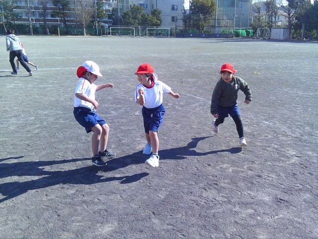 ウオーミングアップも兼ねて鬼ごっこに励んでいます!