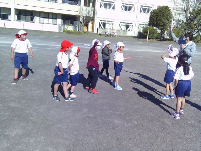 1年生は地域の方のお力を借りながら、だるま落とし、竹とんぼ、お手玉といった昔の遊び体験をしています。はじめは戸惑う子も、だんだんコツをつかんで楽しく遊ぶことができています。