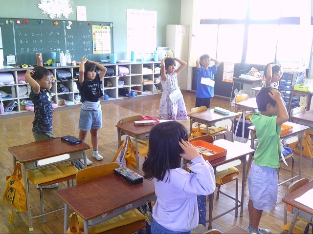 体各部の名称についてボディランゲージを交えながら楽しく学んでいます。